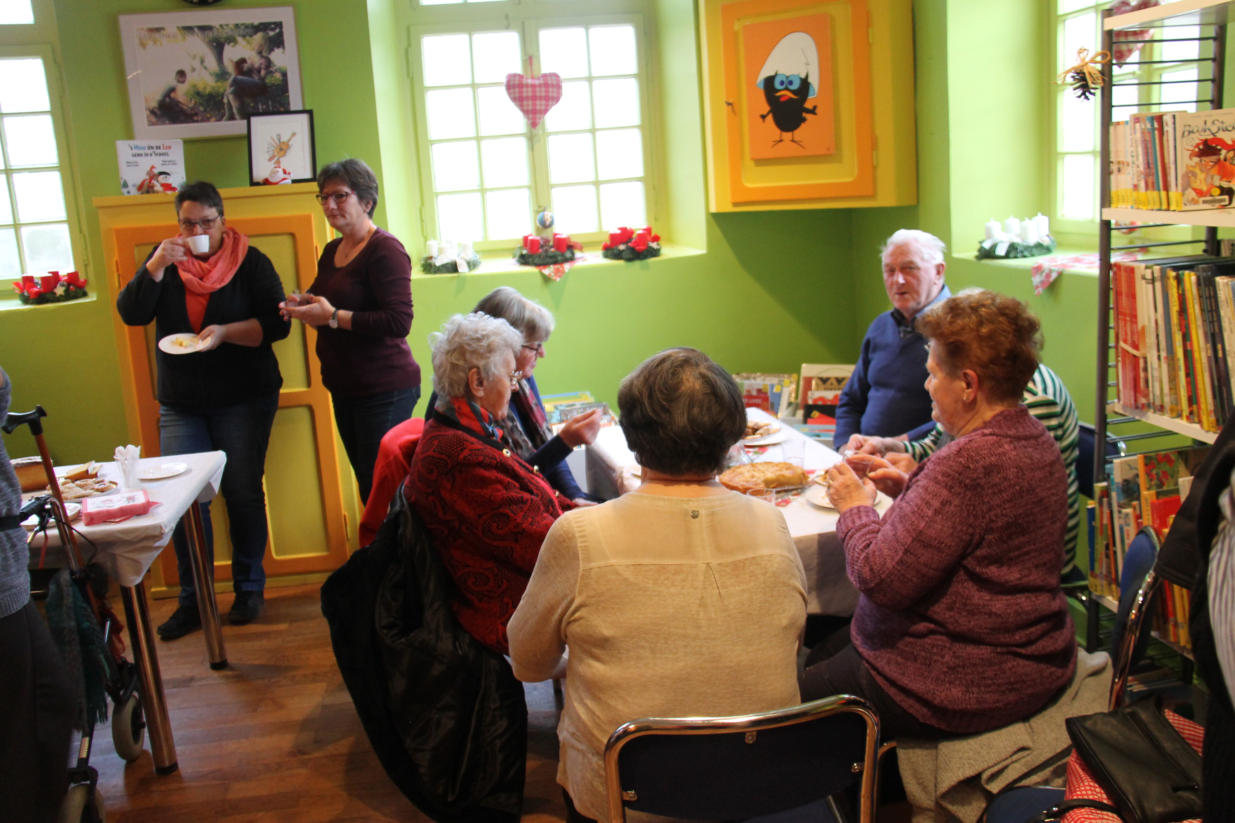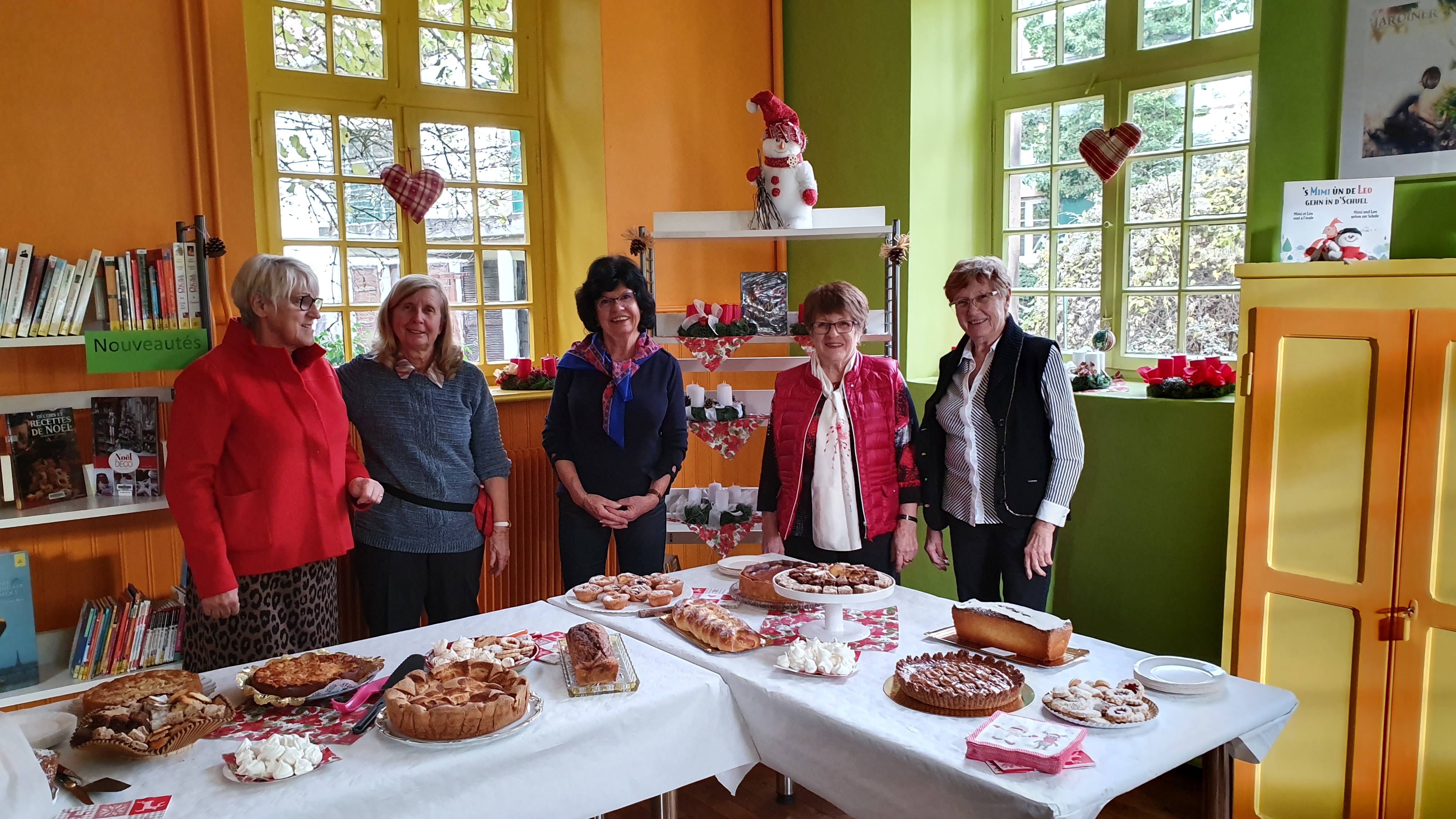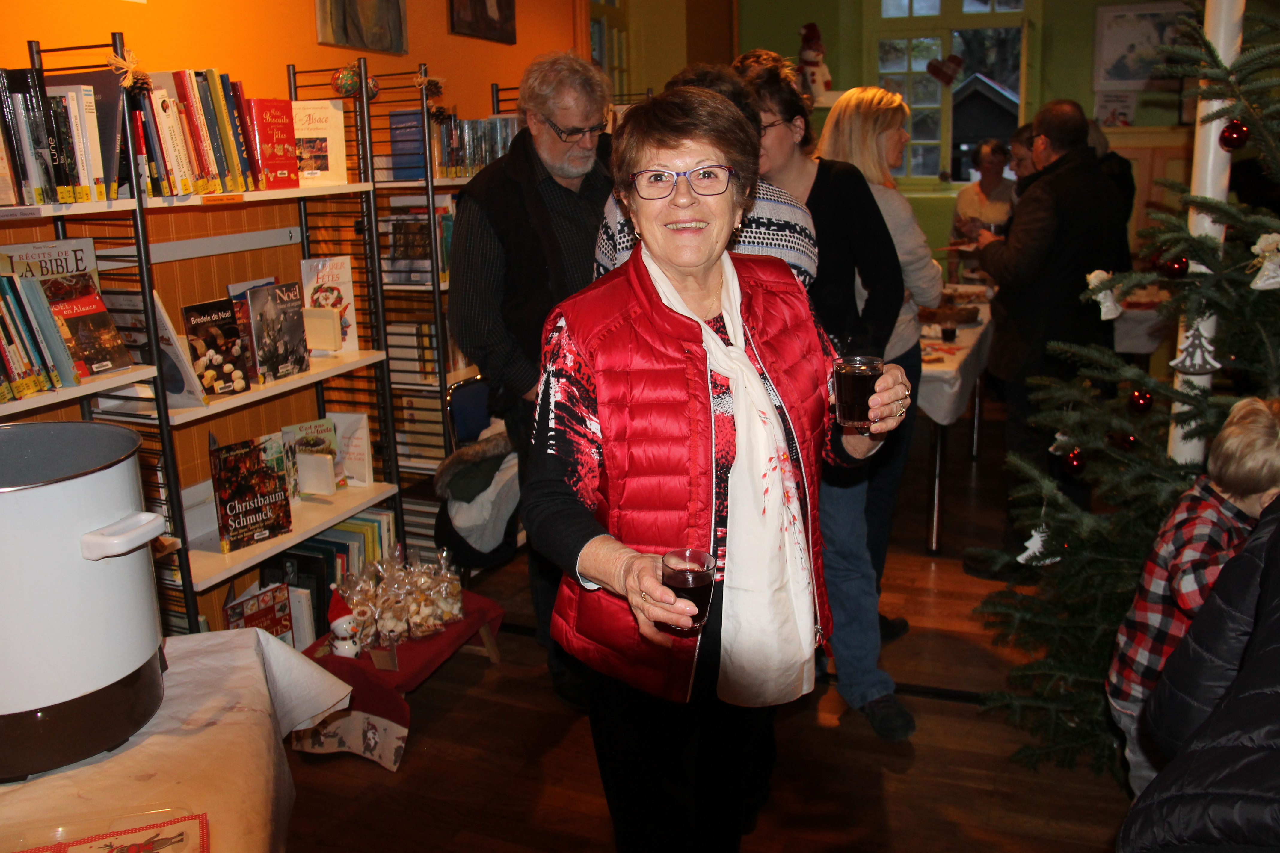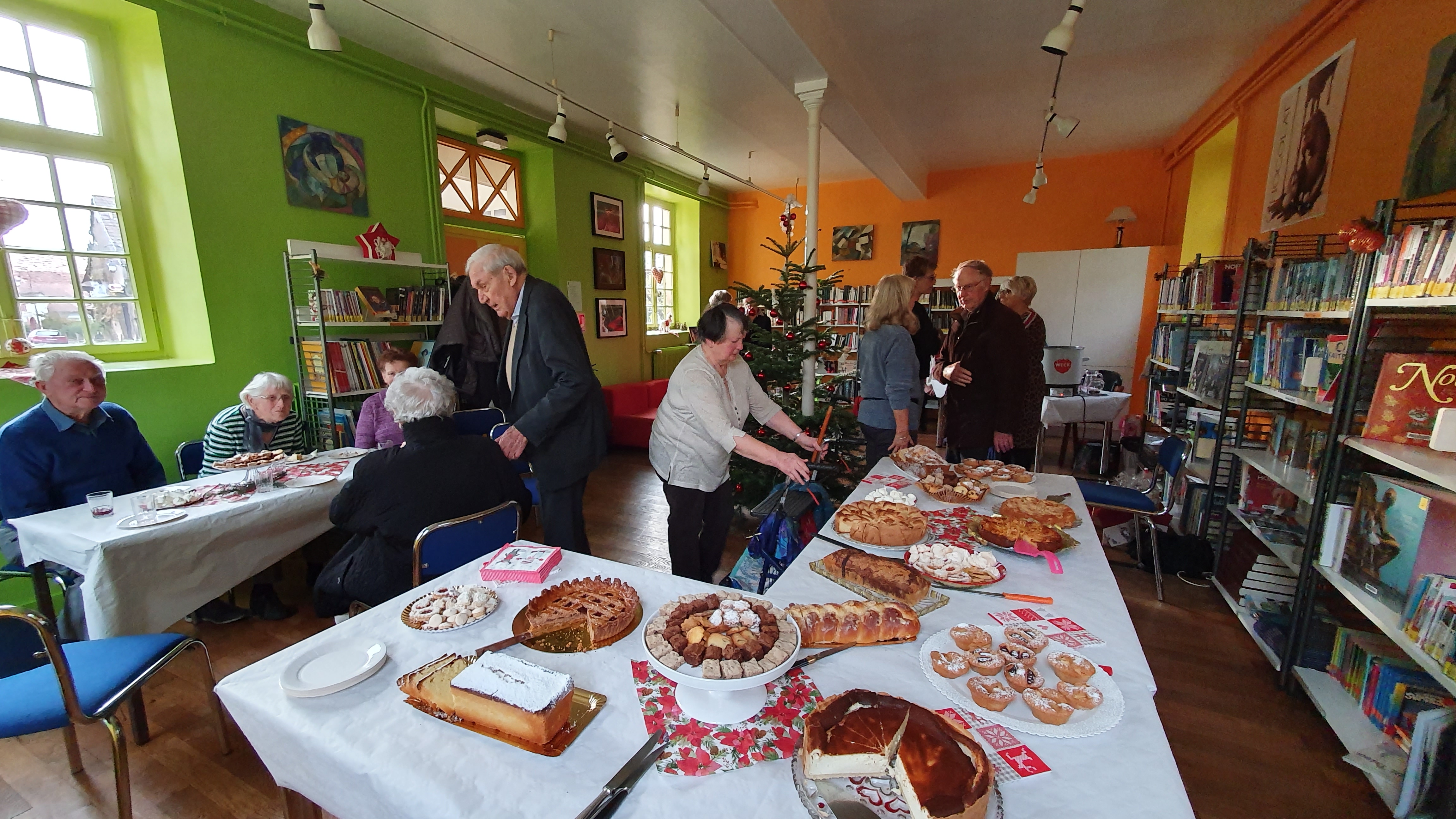Au programme de l’après midi festive, on pouvait siroter un verre de vin chaud au détour d’une table riche en pâtisseries et bredele de Noël ou alors choisir une jolie couronne de l’Avent parmi celles confectionnées spécialement pour l’occasion. Pour les lecteurs d’un jour ou les habitués de la bibliothèque de Handsche, l’équipe des bibliothécaires offrait la possibilité de découvrir les nouveautés en livres et donnait la possibilité de prendre une petite pause lecture – gourmande aux milieux des rayonnages aux couleurs et odeurs de Noël.